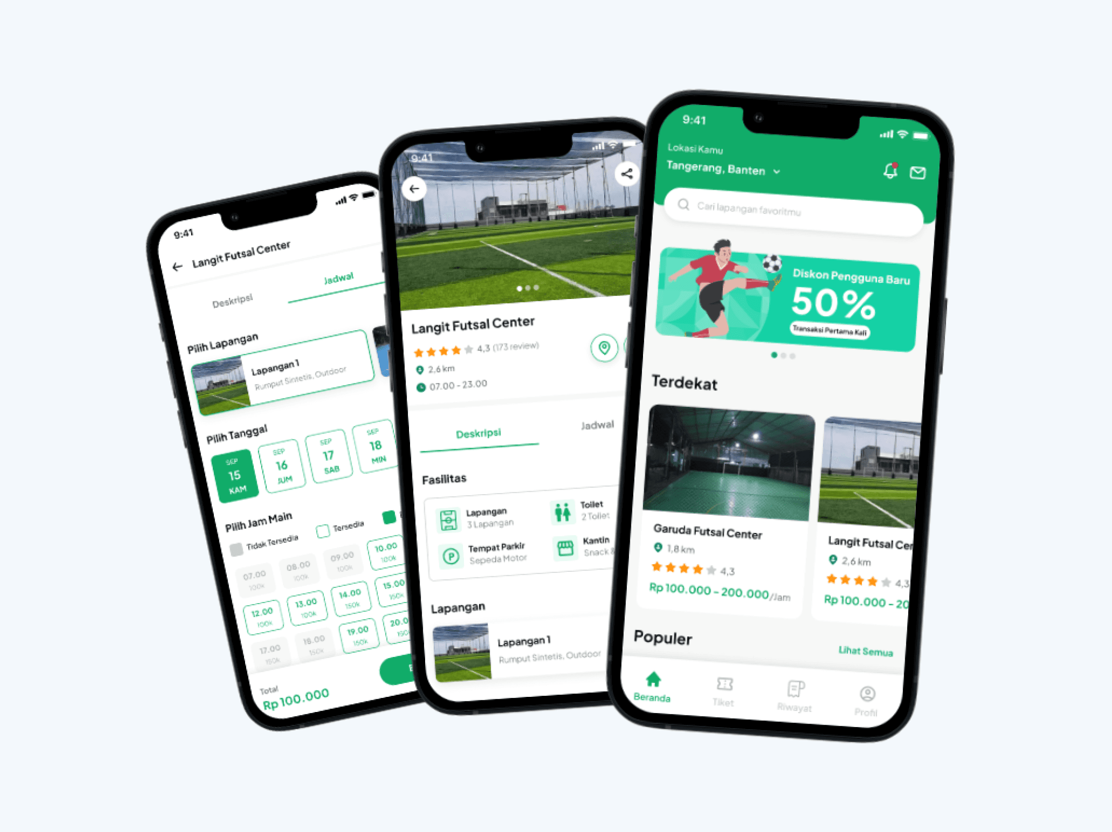 FutsalKuy lets users book courts digitally with search filters for location, distance, facilities, and price.Users can also see real-time availability and make instant bookings.